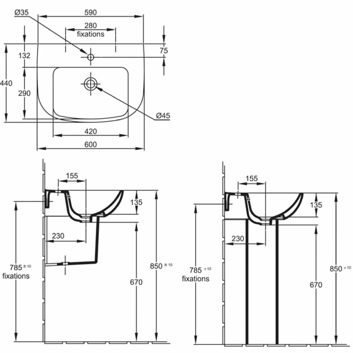 Lavabo compact ODEON UP 60x44cm percé 1 trou